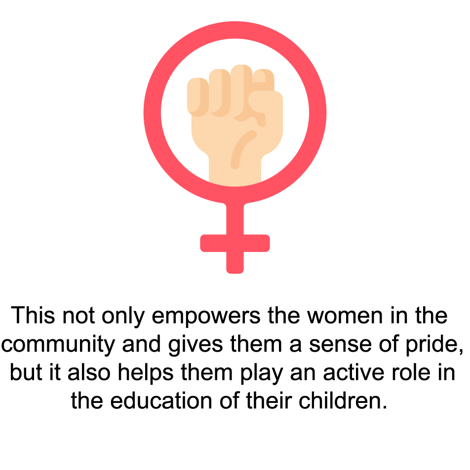 We help turn women's traditional skills into sustainable income for themselves and their families. This not only empowers the women in the community and gives them a sense of pride, but it also helps them play an active role in the education of their own children.